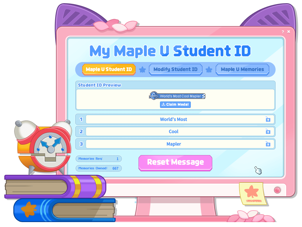 Dean Pink Bean 希望帮助进入枫树大学的学生创建自己的个性化学生证!通过击败怪物来收集冒险岛大学的回忆来完成你的独特ID。除了制作你自己的学生证之外,收集这些记忆还可以为你带来各种其他奖励!