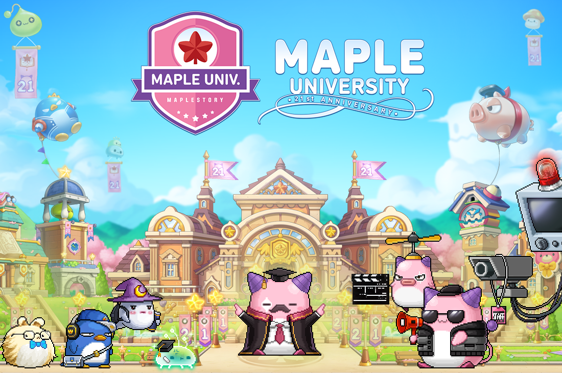 我们很高兴地宣布 枫树大学:21周年 学期即将开始招生!请准备好装备并立即到校园报到。无论您是在读书还是在Boss面前,Pink Bean 都会在您的第一年为您加油。